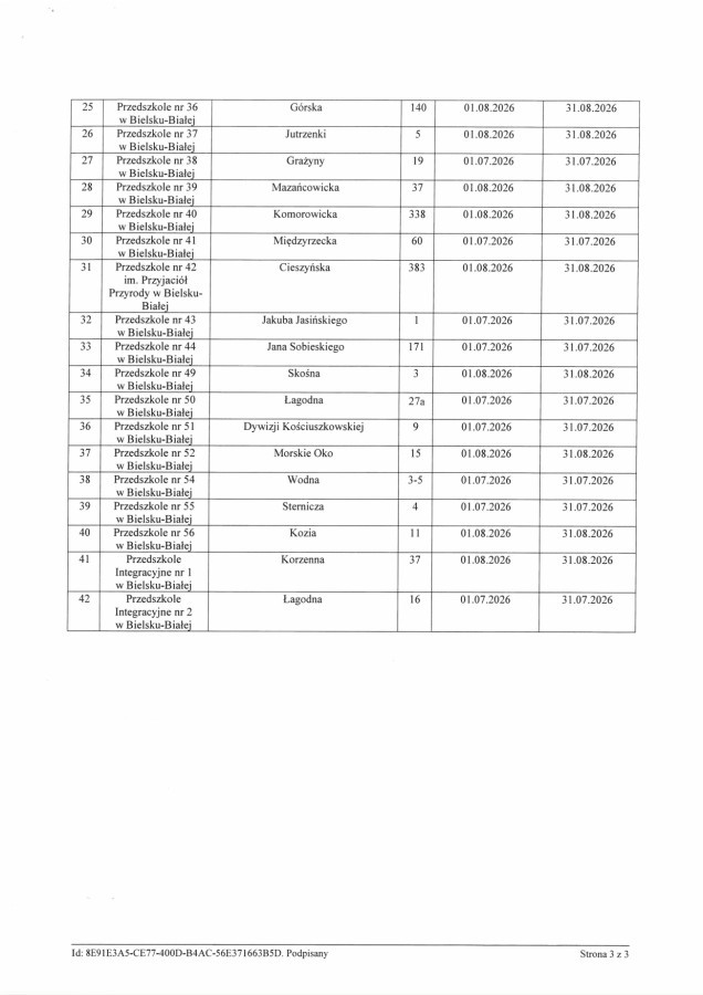 https://przedszkola-wakacyjne-sierpien-bielsko-biala.nabory.pl/ - Rodzic składając wniosek będzie mógł oznaczyć kryteria wprowadzone do systemu, natomiast dla dzieci z placówki macierzystej system automatycznie przypisze odpowiednio 10000 punktów co da im gwarancję miejsca