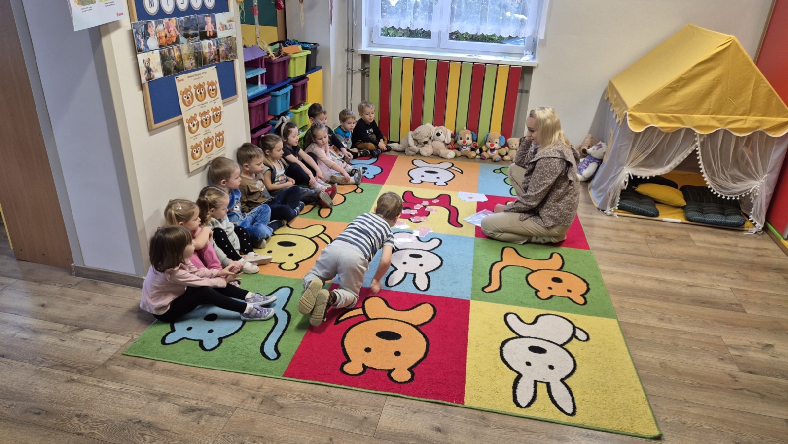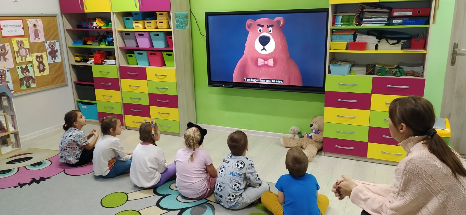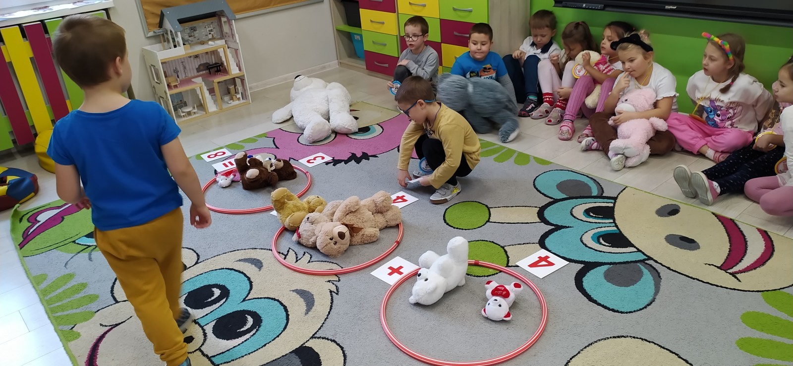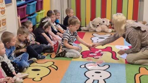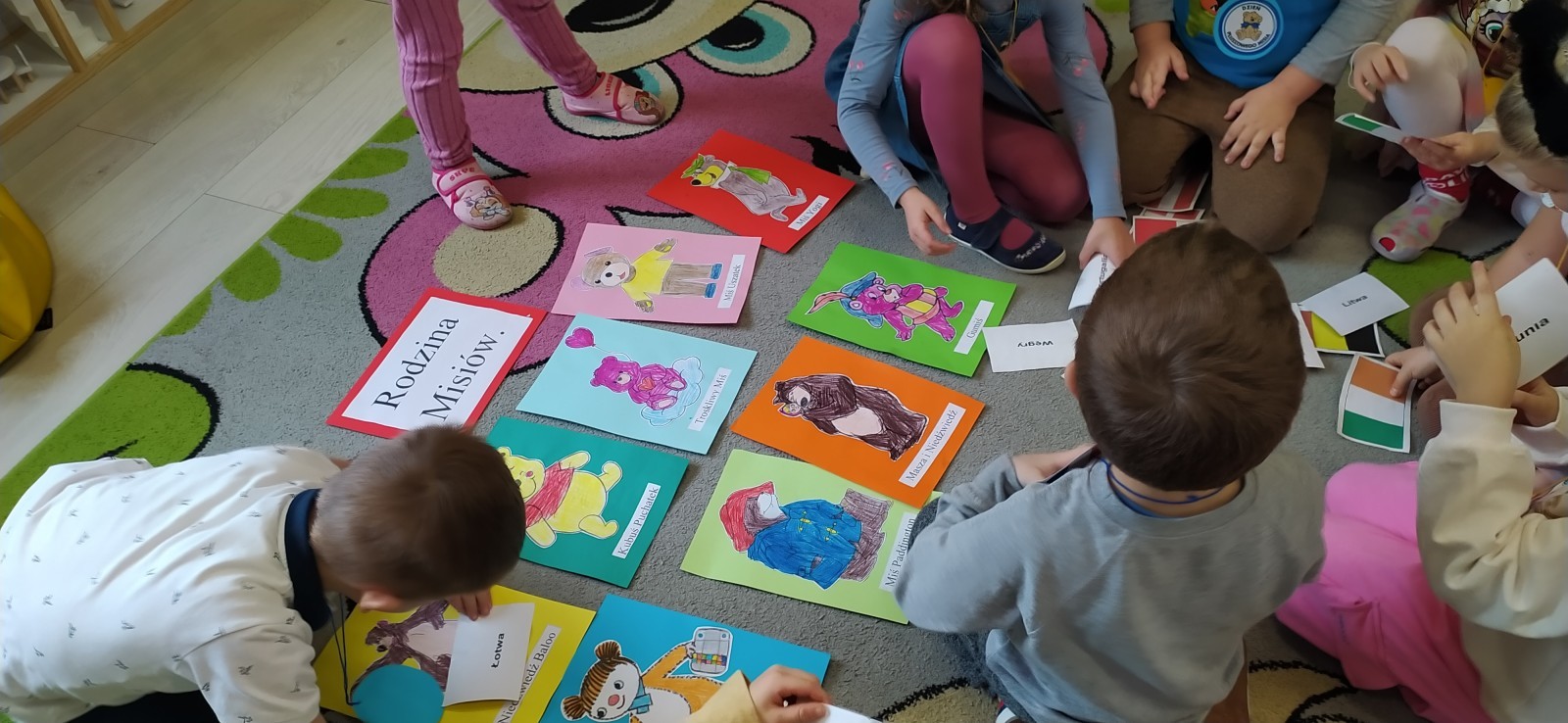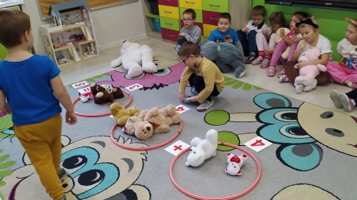 Dzieci z radością opowiadały o swoich ukochanych pluszakach, brały udział w wesołych zabawach ruchowych i zagadkach związanych z misiami. Nie zabrakło wspólnych tańców, zdjęć oraz misiowych aktywności plastycznych.
