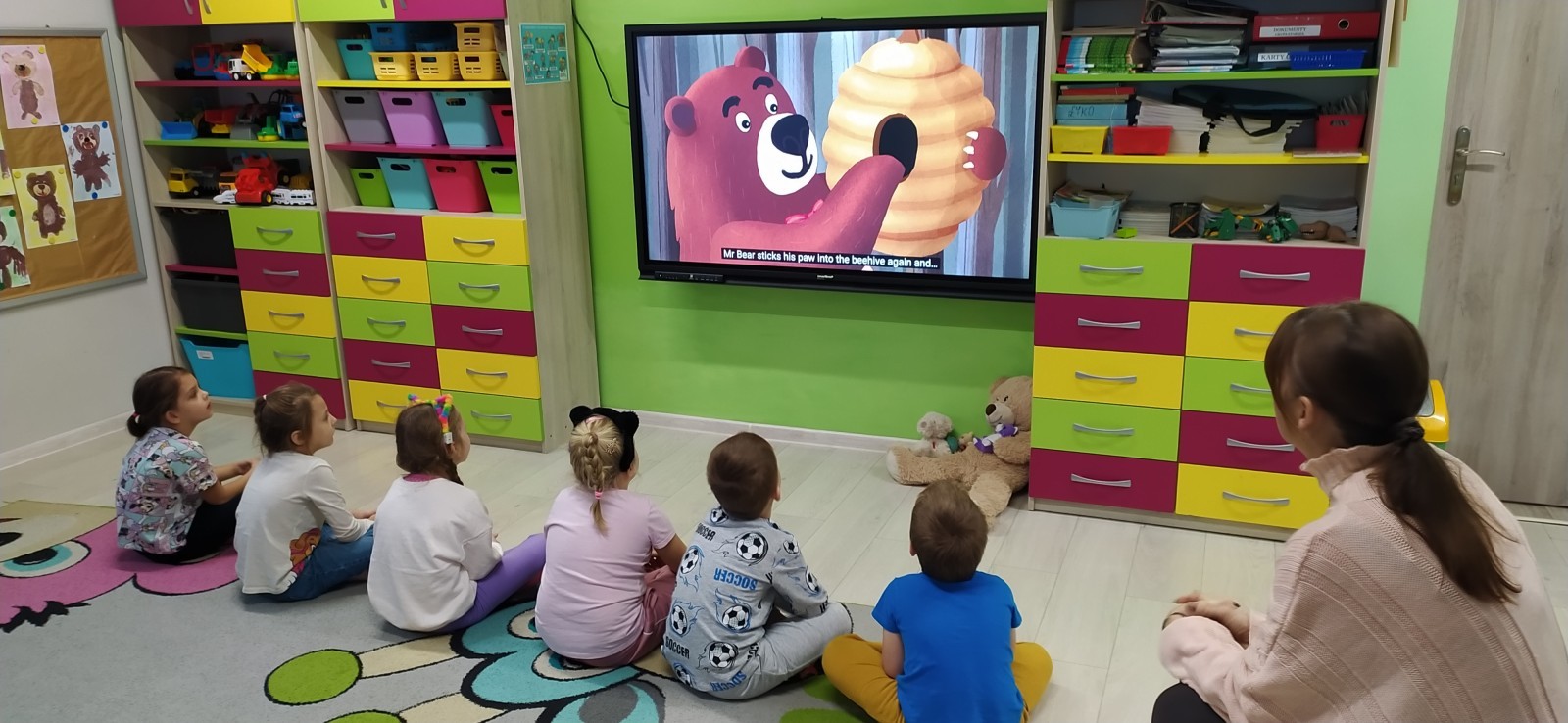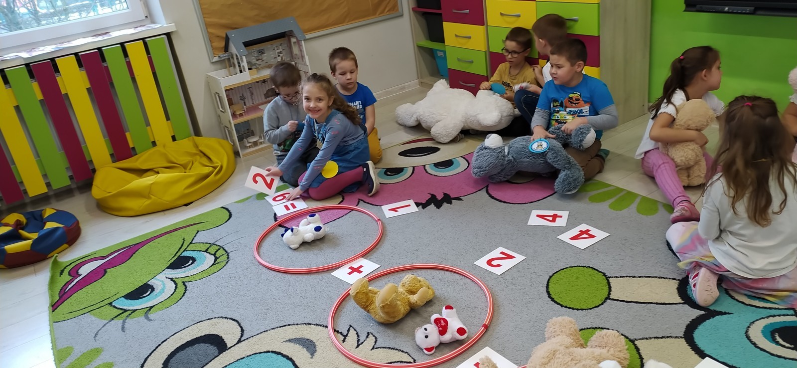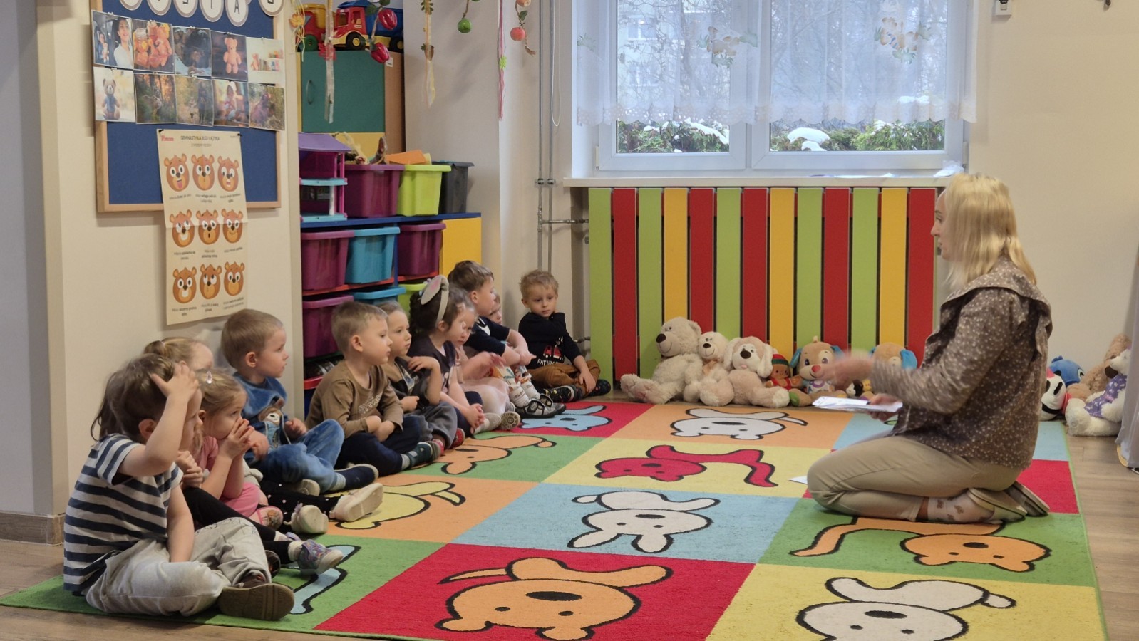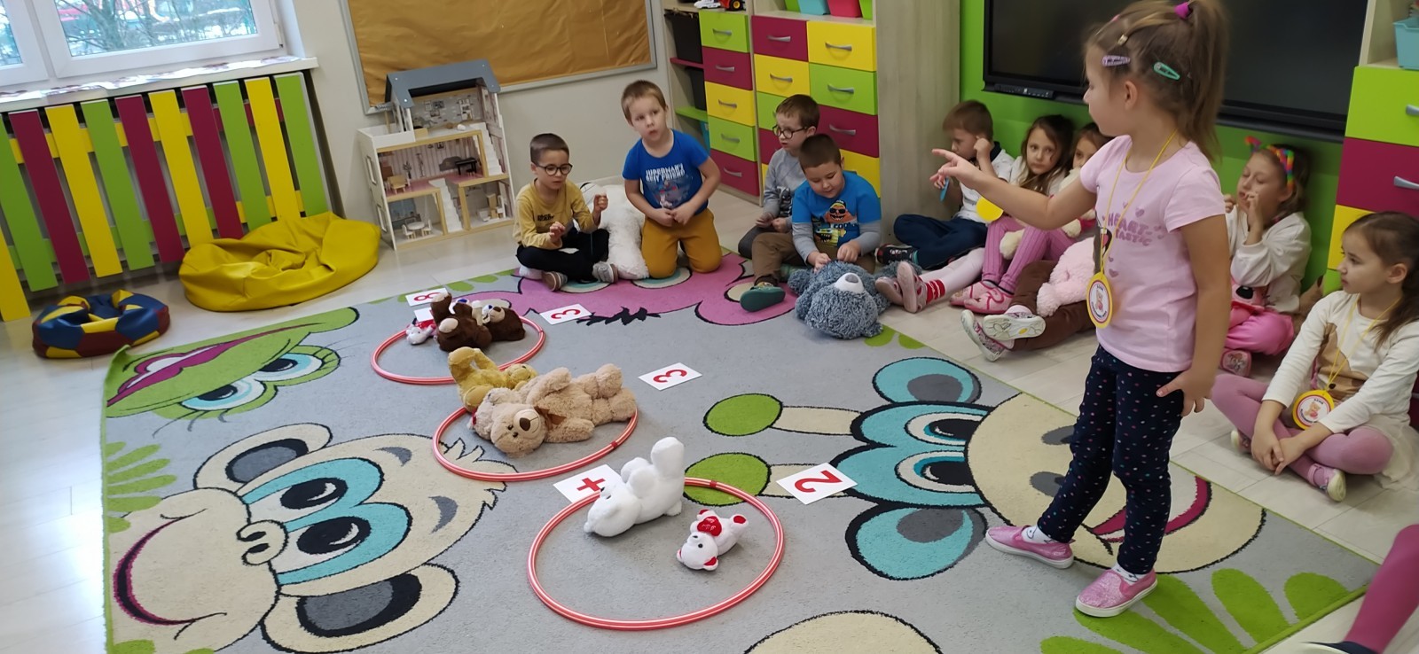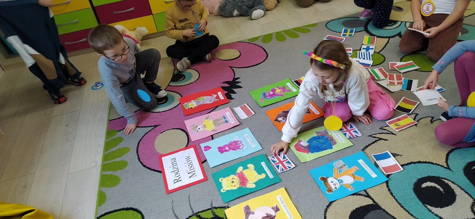 Dzieci z radością opowiadały o swoich ukochanych pluszakach, brały udział w wesołych zabawach ruchowych i zagadkach związanych z misiami. Nie zabrakło wspólnych tańców, zdjęć oraz misiowych aktywności plastycznych.