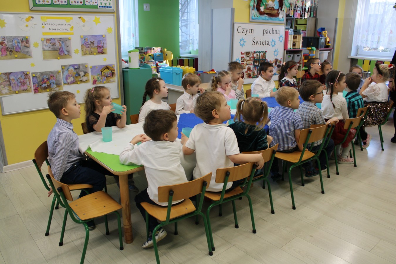 W piątek, 19 grudnia, odbyło się uroczyste spotkanie wigilijne. Dzieci wraz z Paniami i całym personelem dzieliły się opłatkiem, składając sobie życzenia. Nie zabrakło wspólnego śpiewania kolęd oraz kosztowania tradycyjnych potraw.