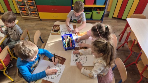 Podczas zajęć rozwijaliśmy sprawność manualną, kreatywność oraz wyobraźnię, a przy tym świetnie się bawiliśmy. Nasze papierowe pączki wyglądały tak apetycznie, że aż trudno było uwierzyć, że to tylko prace plastyczne! 😊