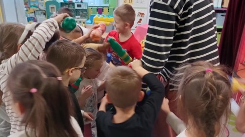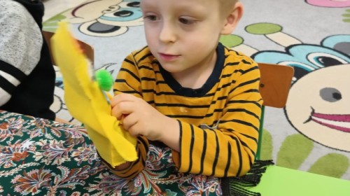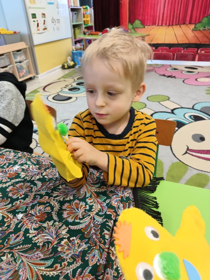 Największą atrakcją było samodzielne wykonanie własnych pacynek – każda z nich była wyjątkowa i niepowtarzalna. Warsztaty dostarczyły dzieciom wielu radości, rozwijały wyobraźnię i kreatywność.