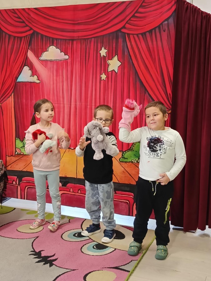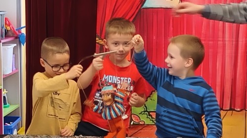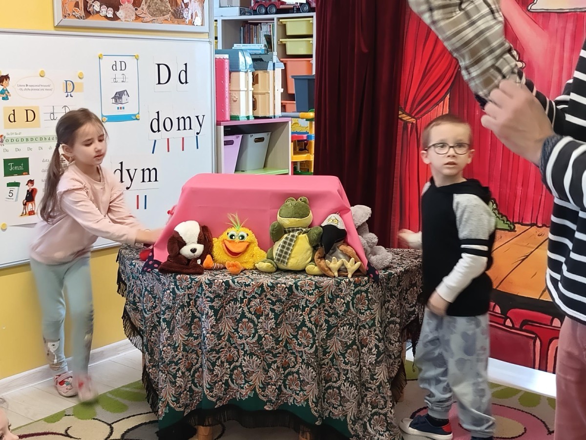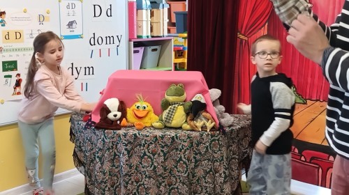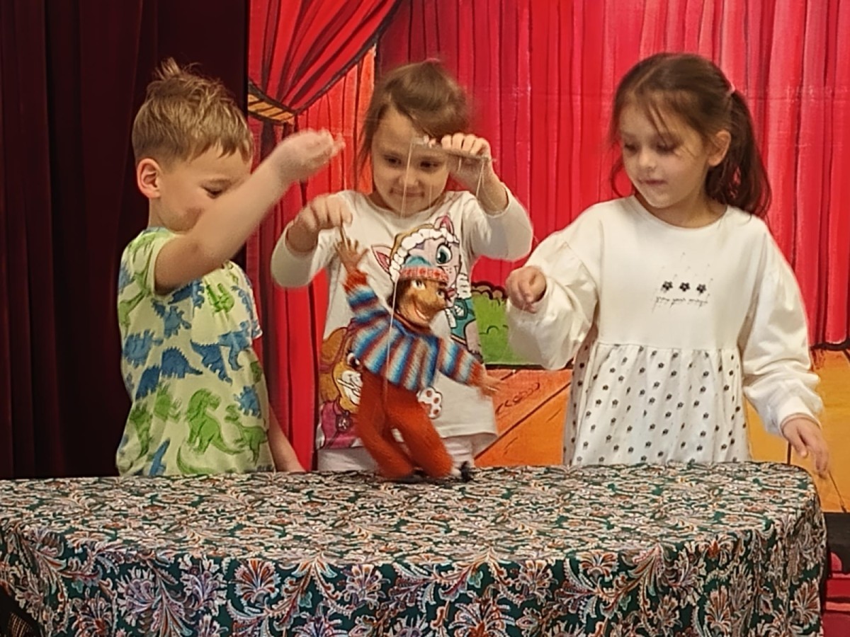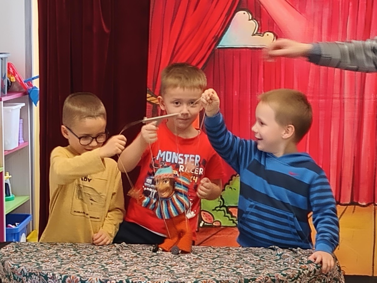 Dzieci poznały różne rodzaje lalek teatralnych oraz dowiedziały się, jak wygląda praca aktora-lalkarza.